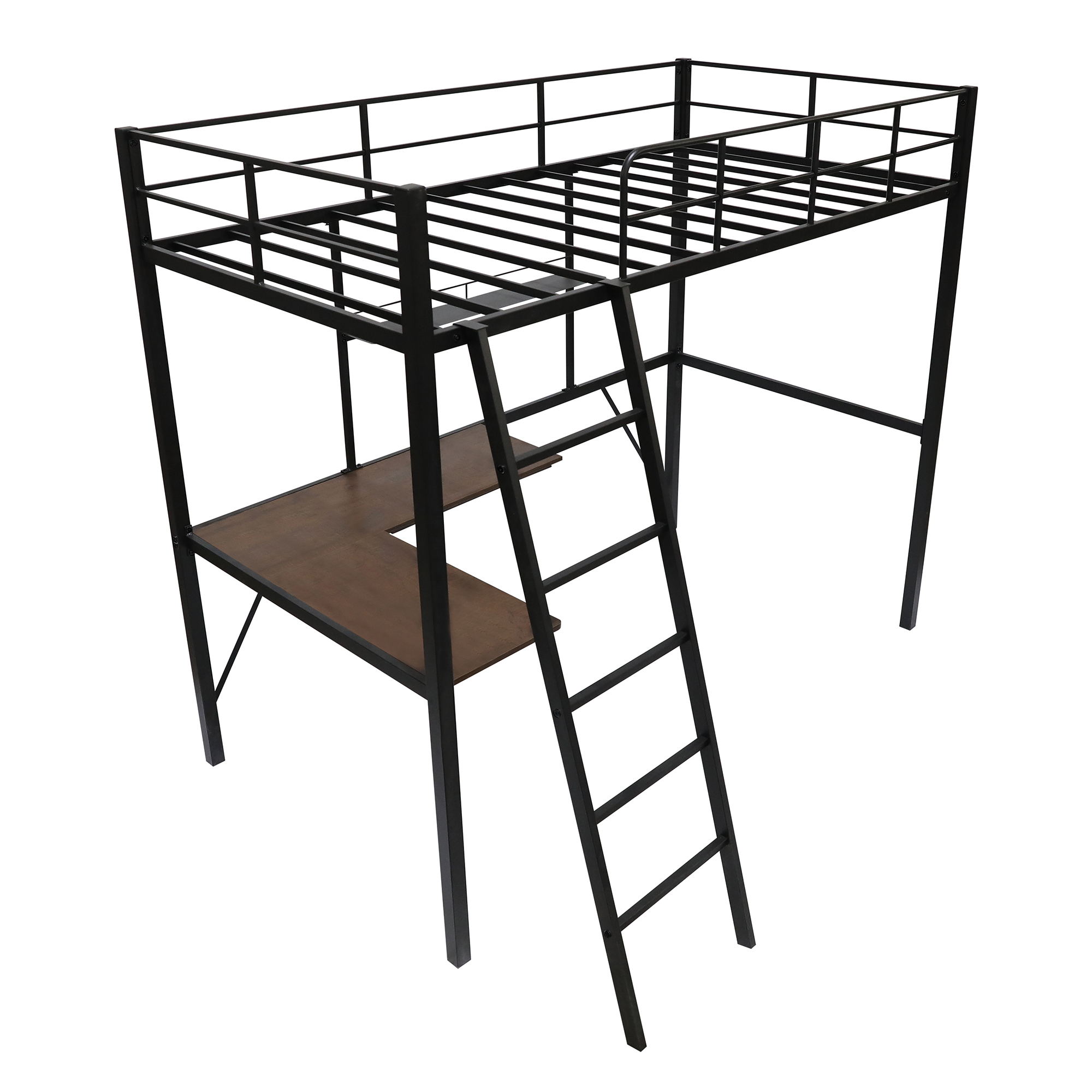 Dcenta Metal Twin Loft Bed with Desk and Shelf, Twin Size High
