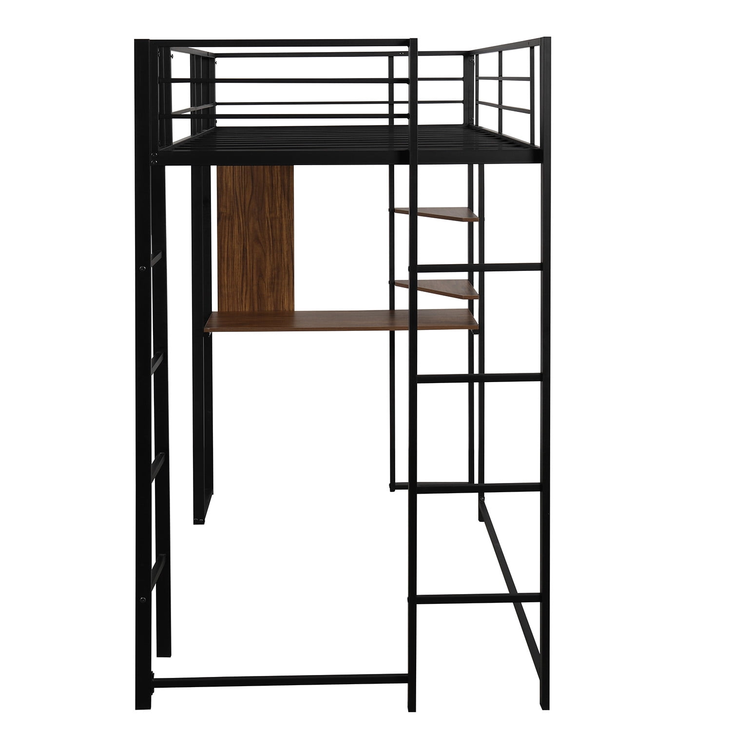Full Size Metal Loft Bed, Twin Size Bed with 1 Desk & 2 Shelves . Full Size Loft Bed Metal Frame With Long Desk 4 Shelves Teens Kids .